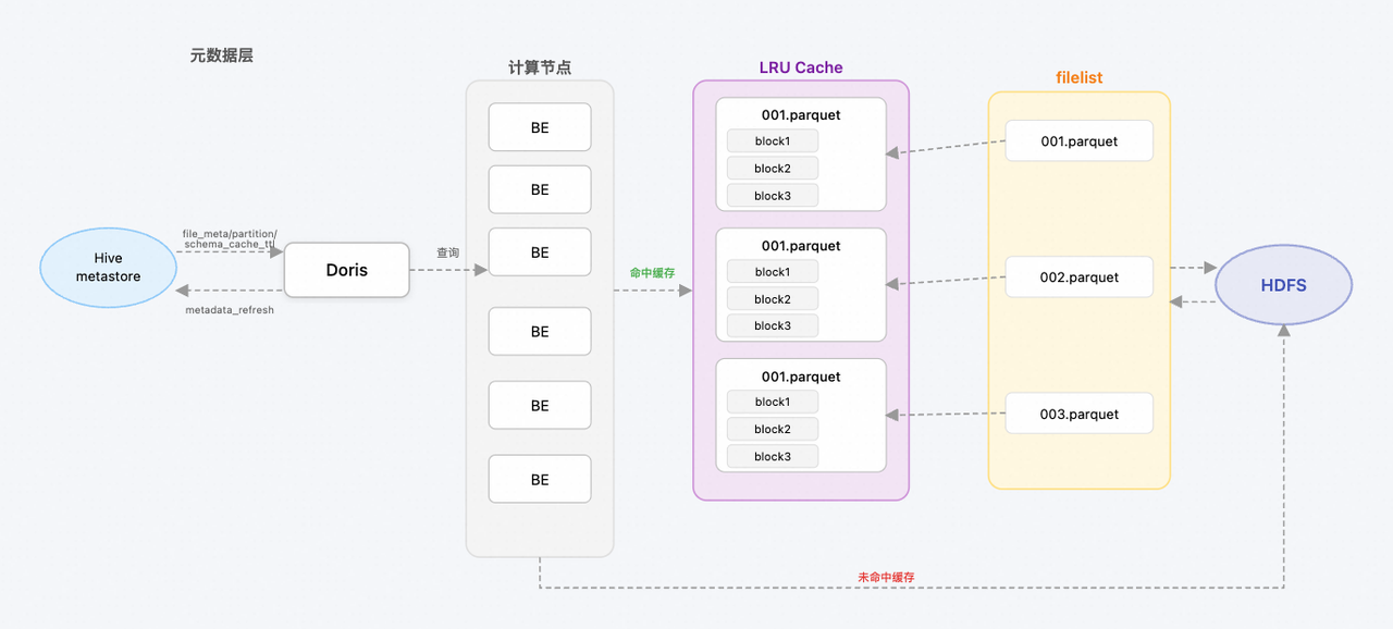 在 SelectDB on Hive 架构下,我们通过多层缓存机制实现了查询性能的数量级提升,核心场景查询从分钟级缩短至秒级。