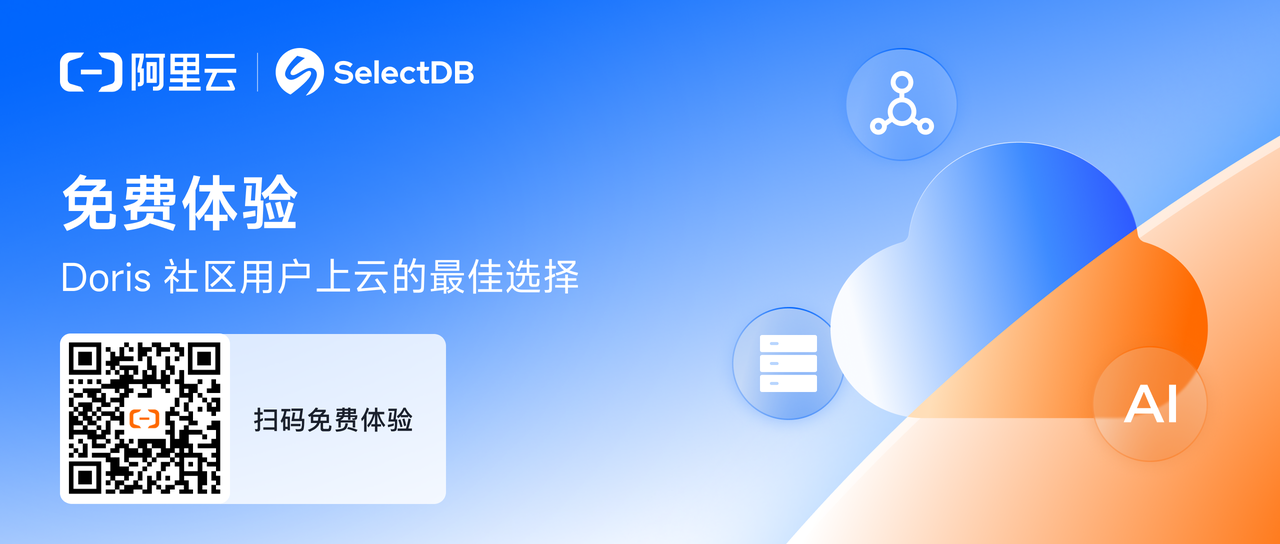 阿里云数据库 SelectDB 植根于开源 Apache Doris 的坚实基础,深度融合云随需而用的特性,依托阿里云基础设施,构建起云原生存算分离的全新架构,面向企业海量数据的实时分析需求,提供极速实时、湖仓融合统一、简单易用的云上数仓服务。扫码免费体验: